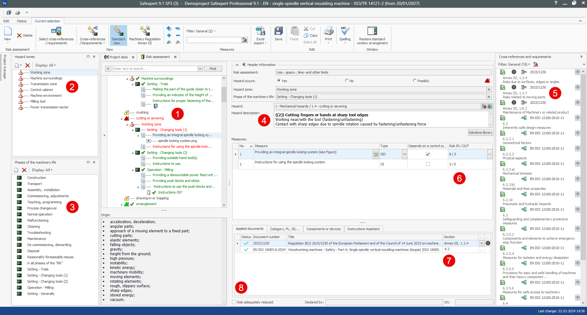 Safexpert offers the option of defining the phases of the machinery life and hazard zones in advance: