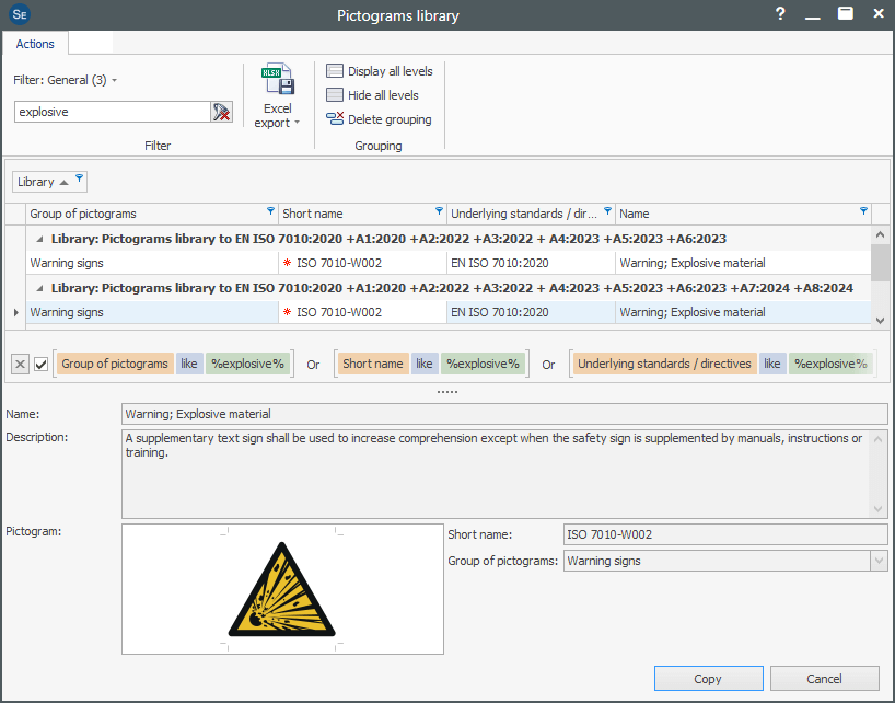 Safexpert contains a pictogram library for selecting pictograms: