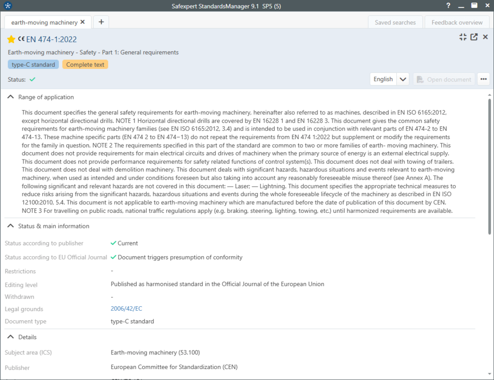 El software Safexpert le ayuda a buscar, seleccionar y aplicar sus normas, y le ahorra trabajo en el proceso de marcado CE. En particular, se beneficiará de: